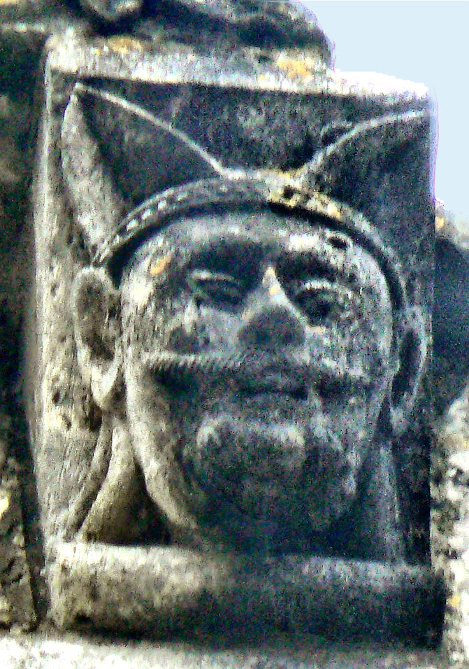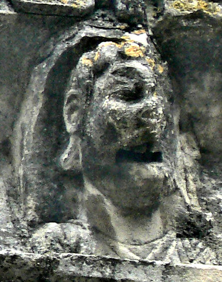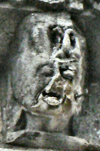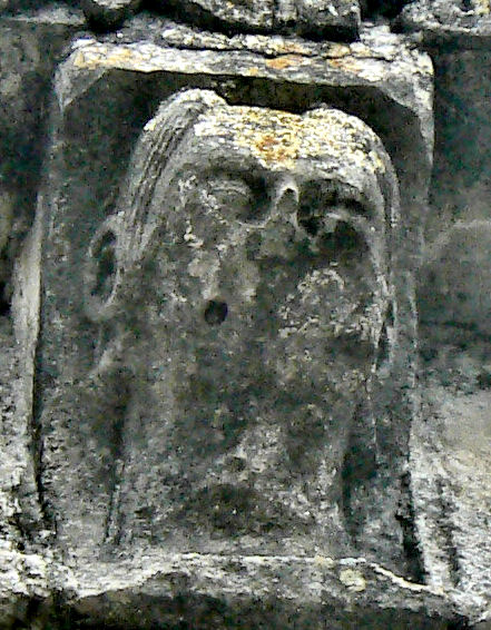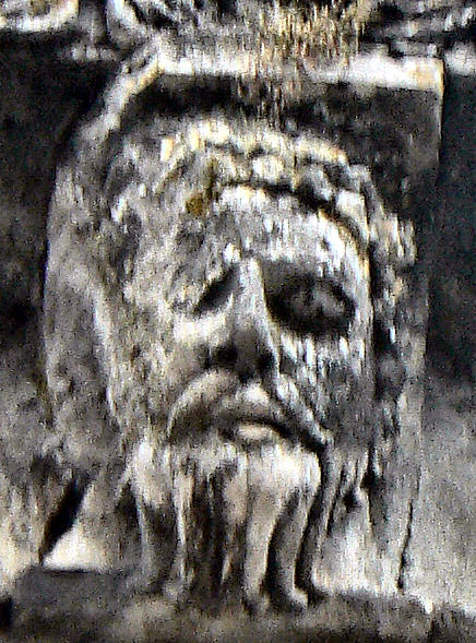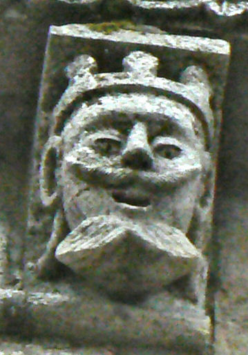 12 - Beau modillon, comme vous voyez il représente la tête couronnée d'un roi. Elle a de grande moustache retroussées vers le haut, la bouche est ouverte, et une barbe bien fournie à deux pointes retrousées vers le haut.