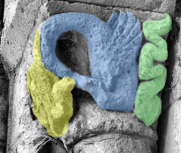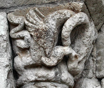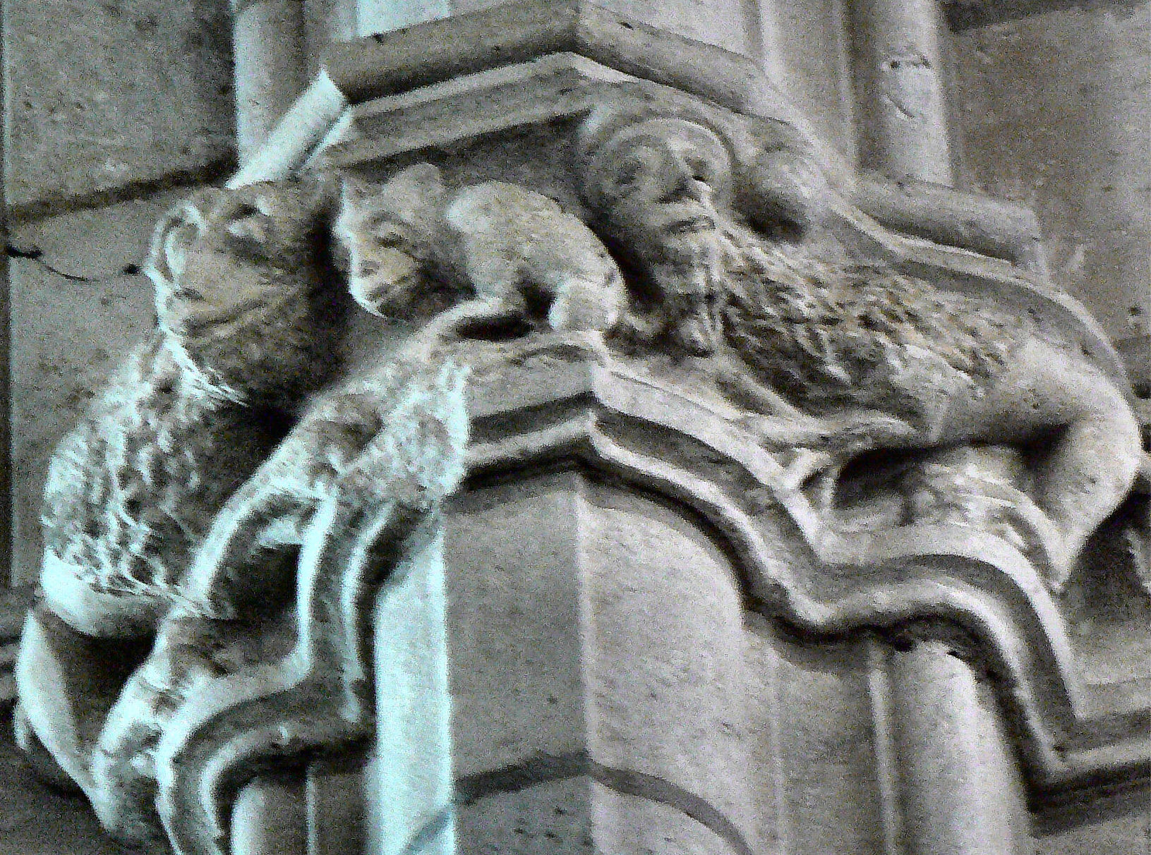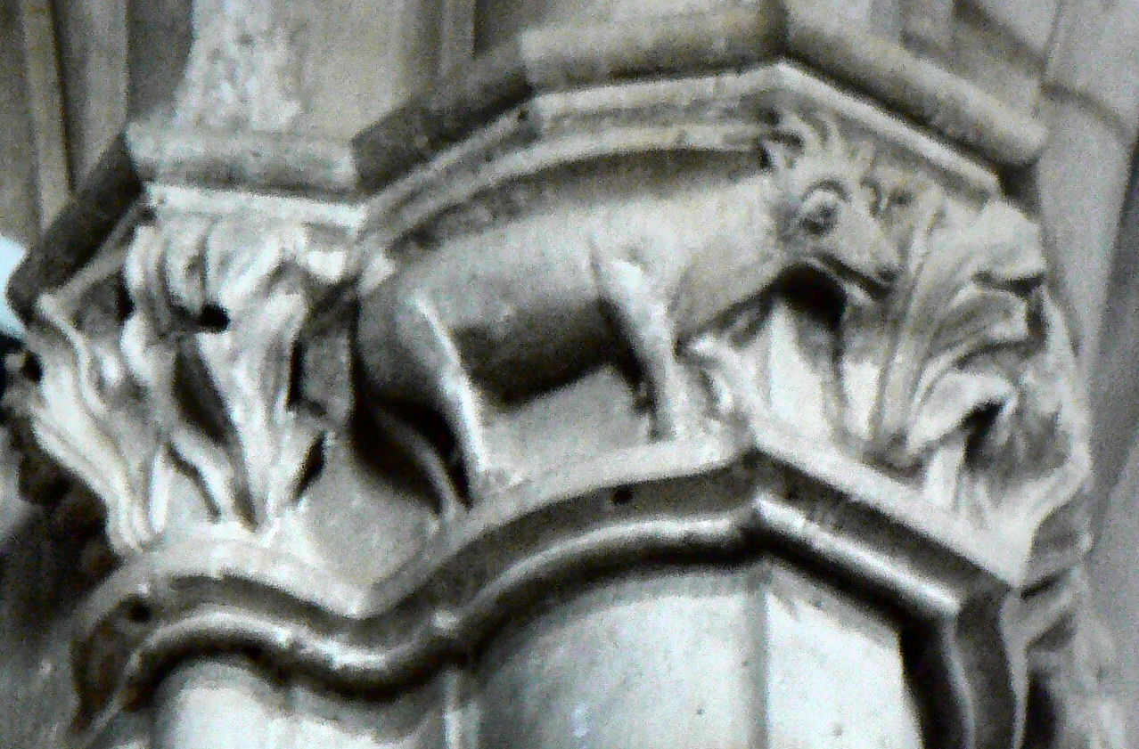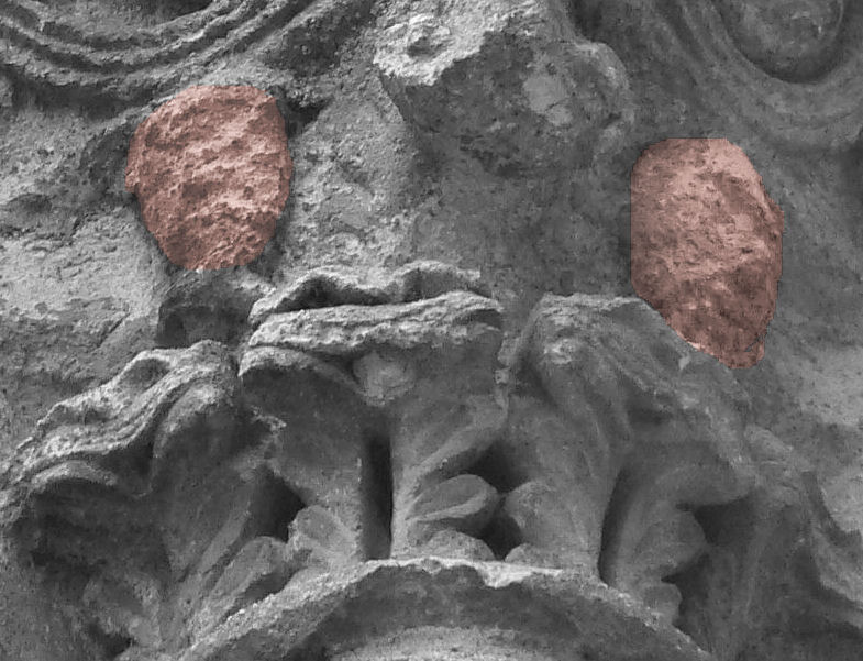 animal ? Chapiteaux des fenêtres murées de la partie supérieure: