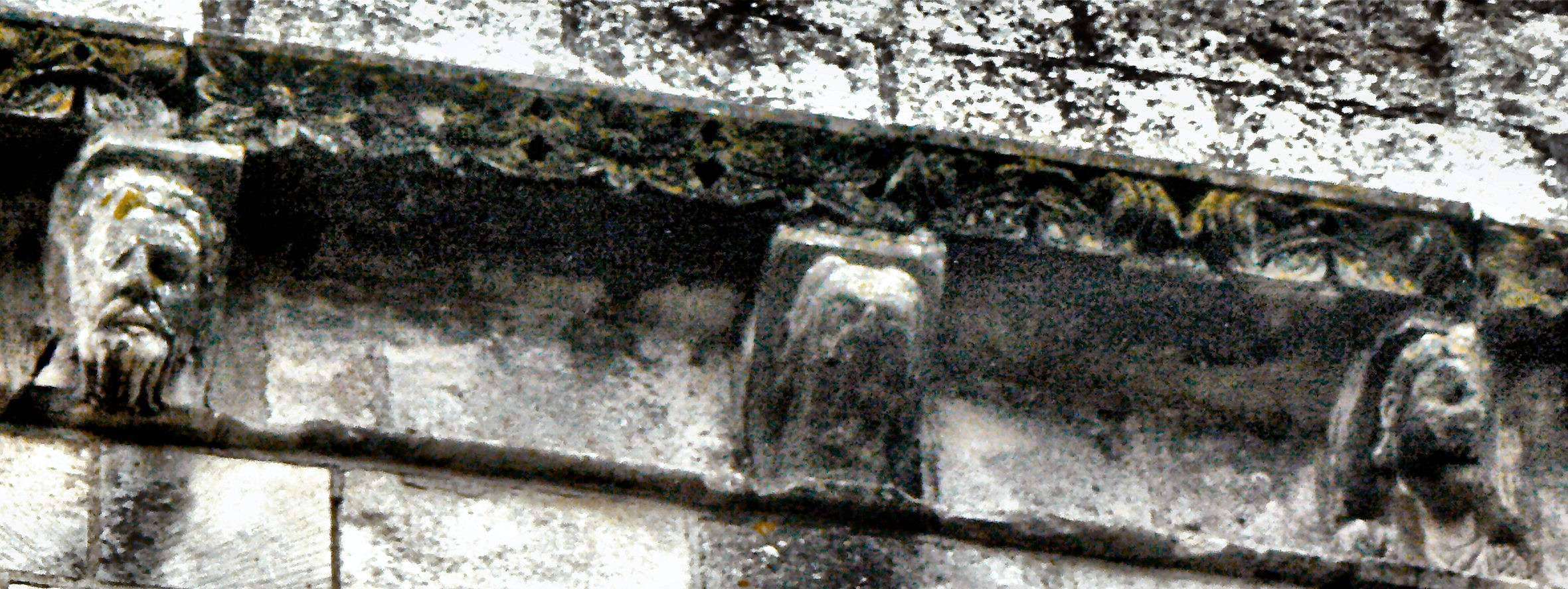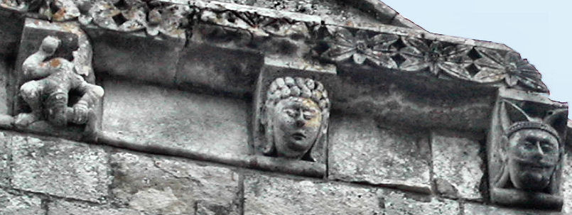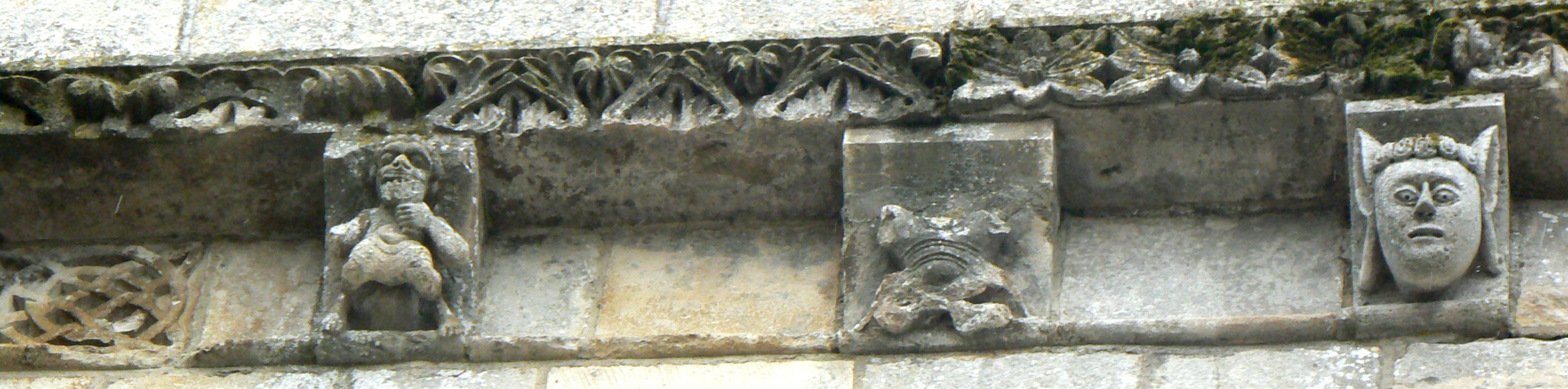 31 - Modillons au-dessus de la porte de communication, sur le côté gauche de l'église.