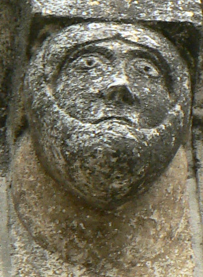 4 4 – Modillon à tête humaine naturelle (c'est-àdire sans caricature) avec barbe, et moustache, elle semble couronnée de pièces