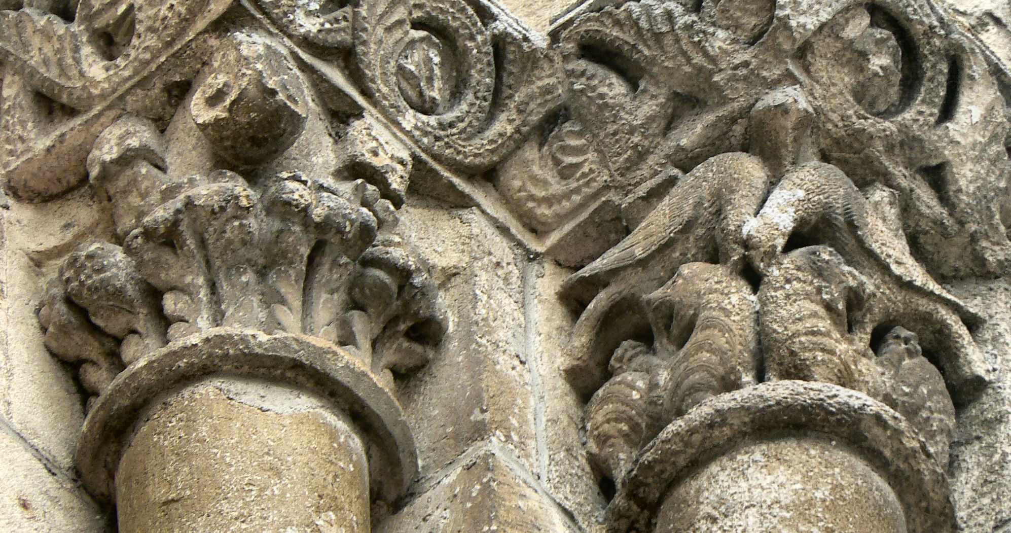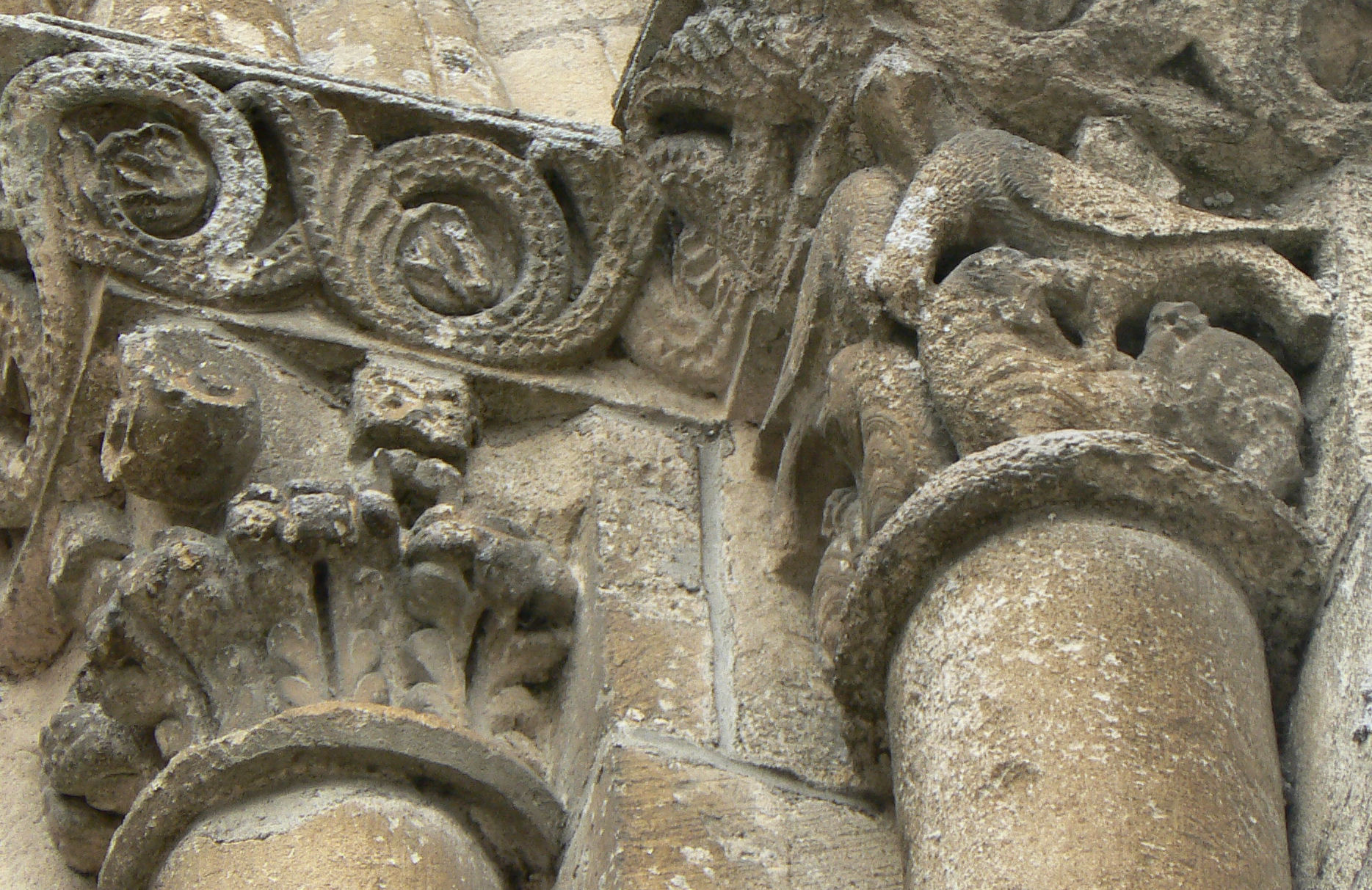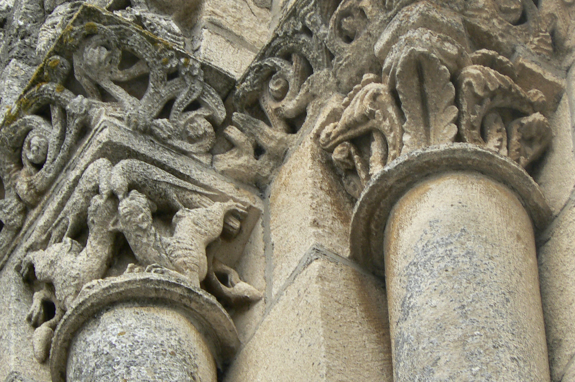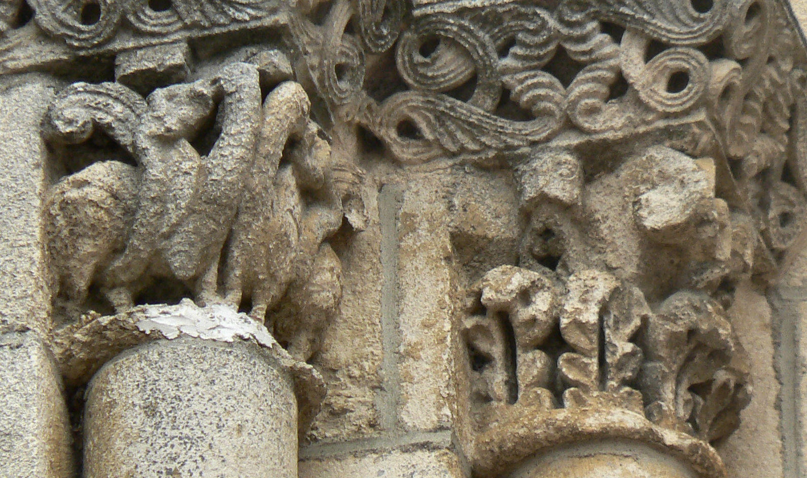 droit ds ailes ? Sur le chapiteau de droite, même remarque, à gauche un oiseau, à droite plus rien.