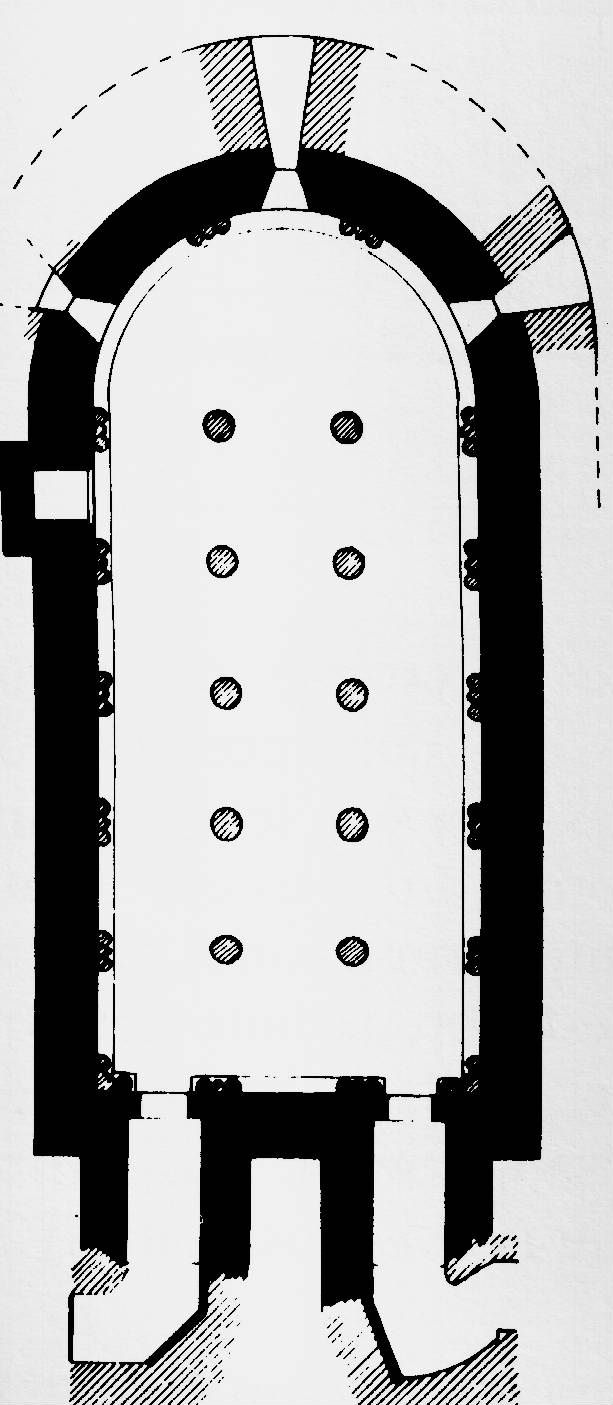 appliquées contre les murs Nord et Sud supportent des chapiteaux décorés de