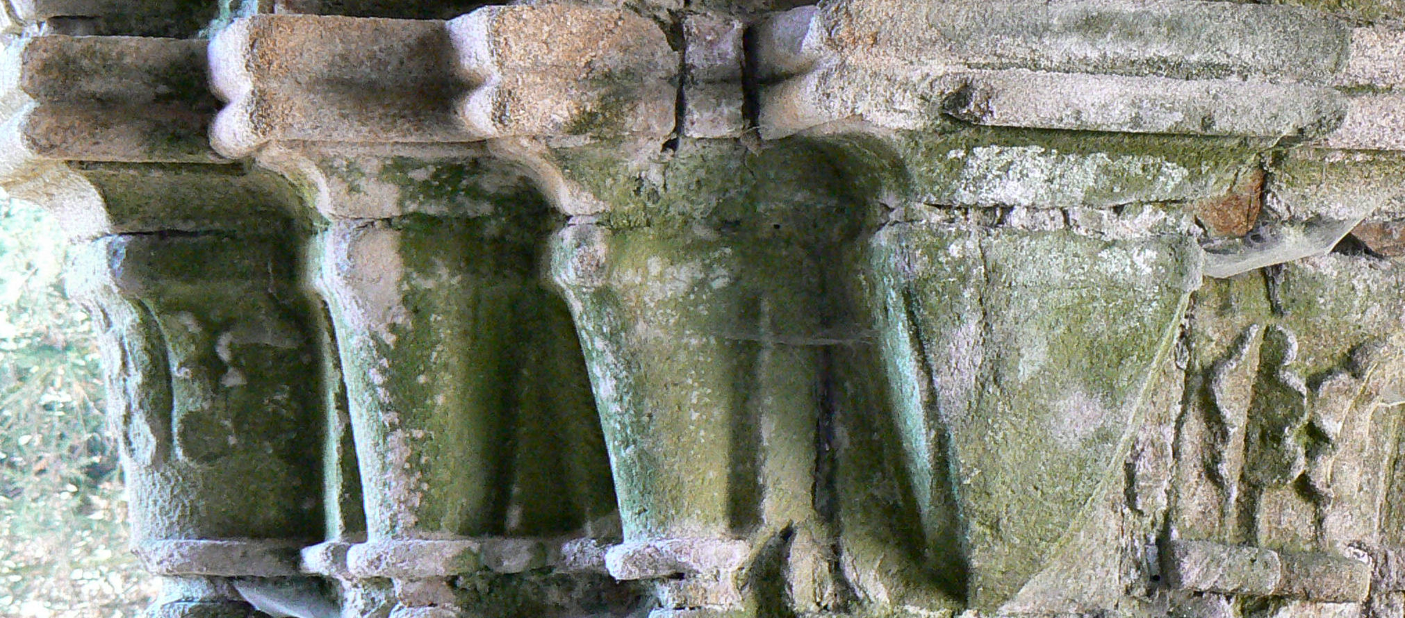 A2 - Chapiteaux un peu usés décorés de crosses.