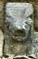 C5 - Tête humaine , les yeux sont cernés, la bouche est prohéminente avec peut être quelque chose entre les lèvres. Vous pouvez voir depuis les joues jusqu'au menton ce qui pourrait être une barbe.