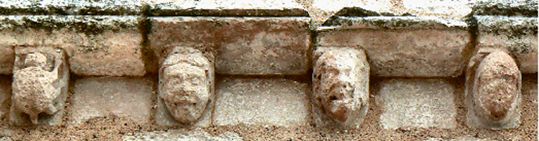 Il existe trois autres modillons dont nous n'avons pas mentionné leur position sur le plan. Il s'agit de sculptures en très mauvaises états et on ne peux les décrire correctement. Ils se trouvent aux extrémités de la rangée centrale au-dessus du porche.