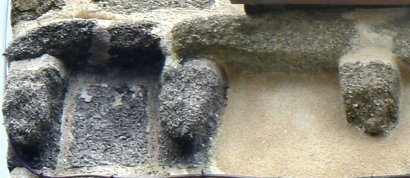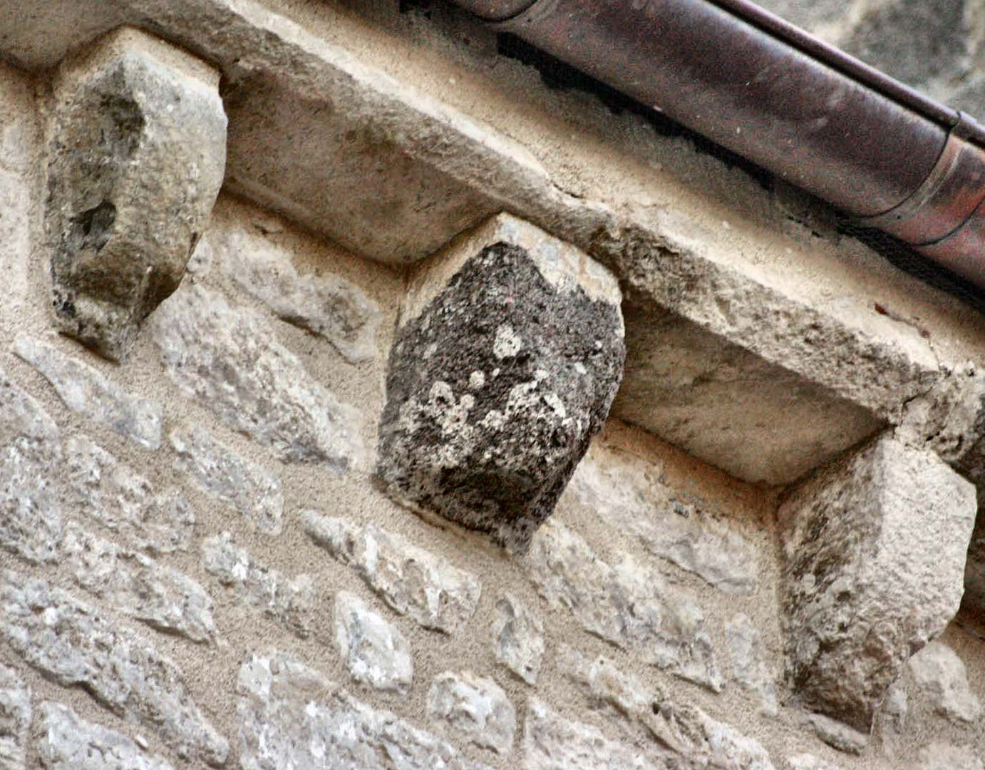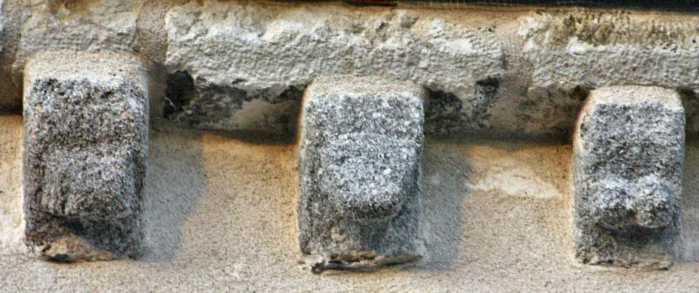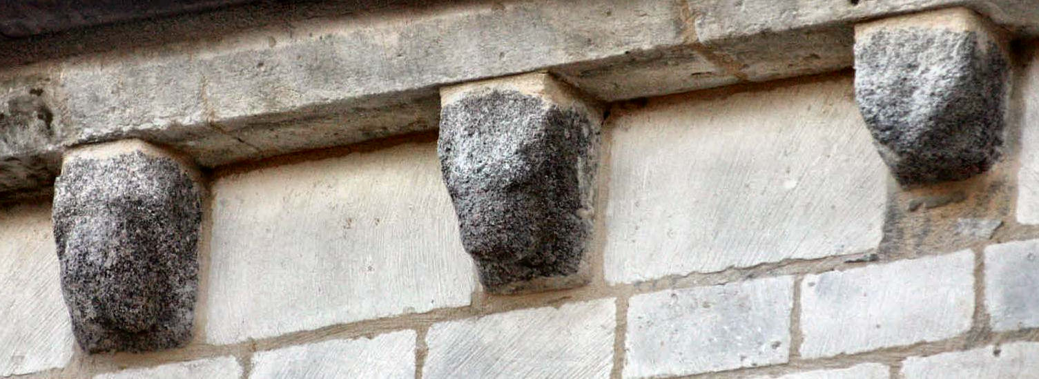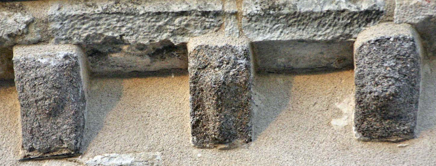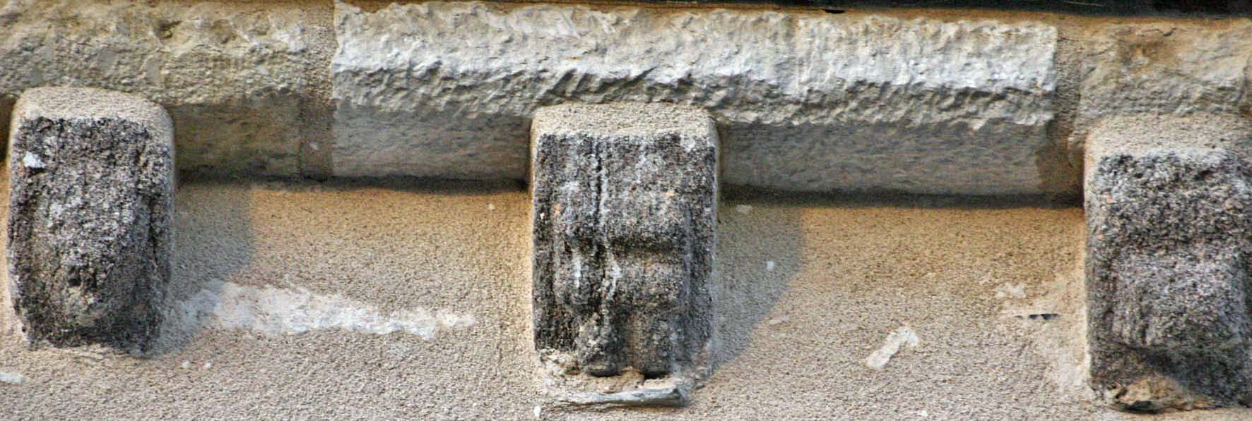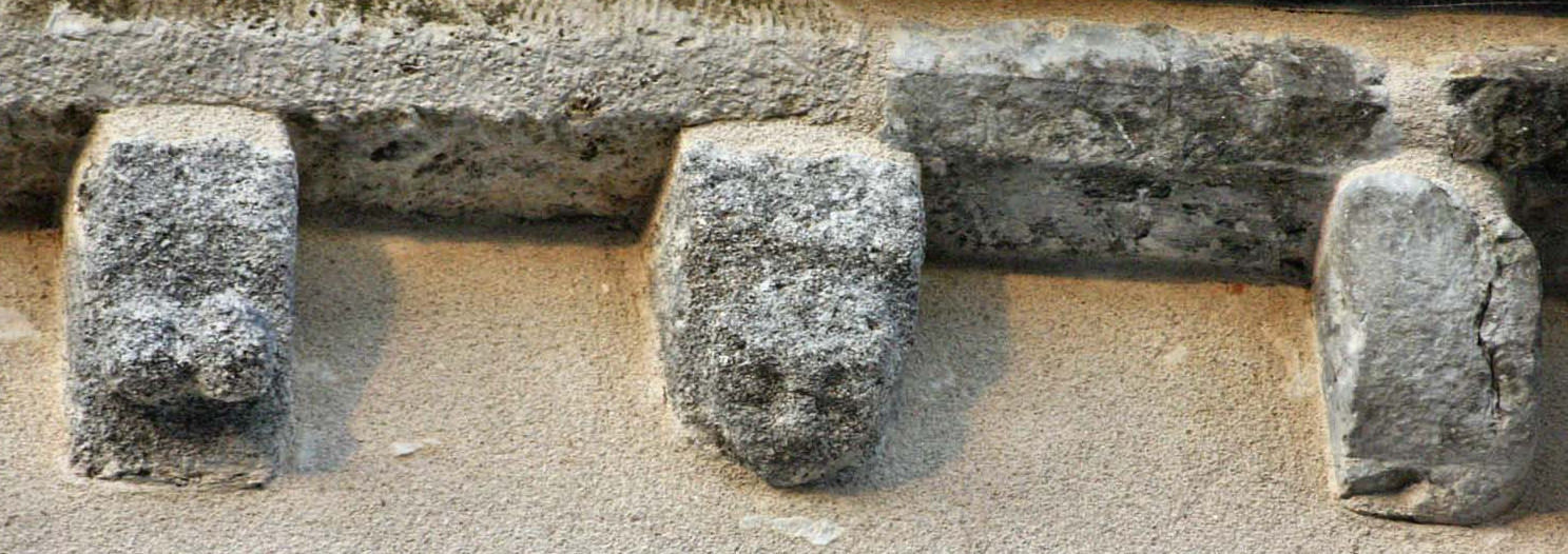 ![]() 5 5 – Modillon bien usé par le temps, vous pouvez encore voir une sculpture en forme de croisillon.