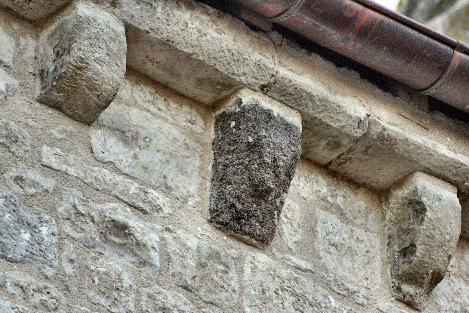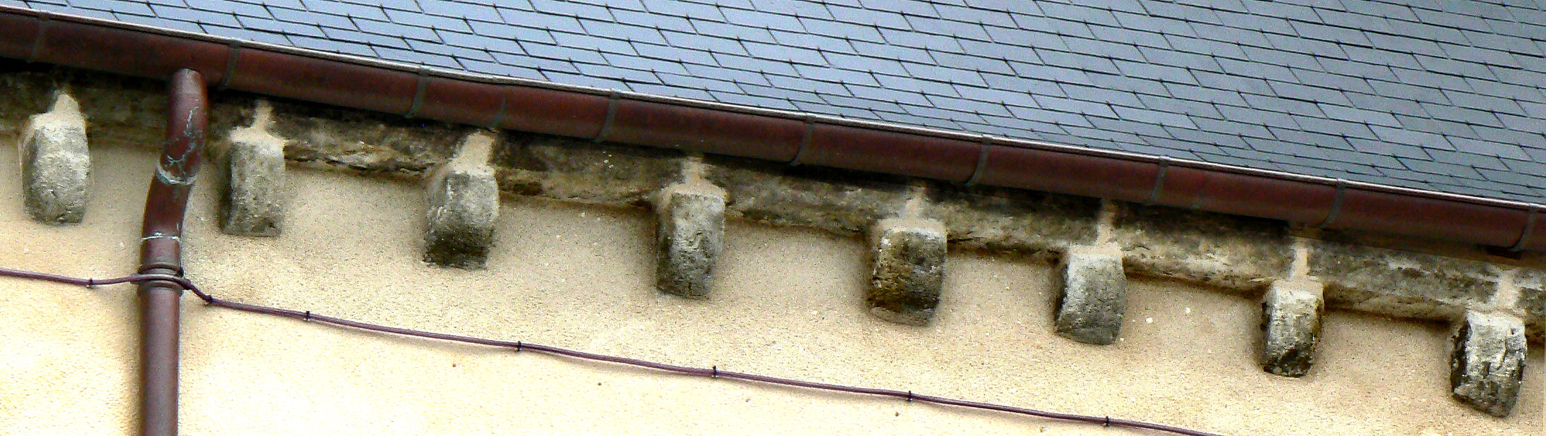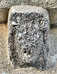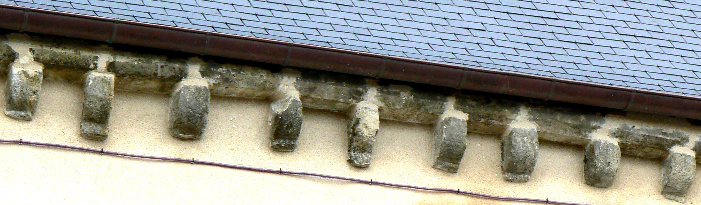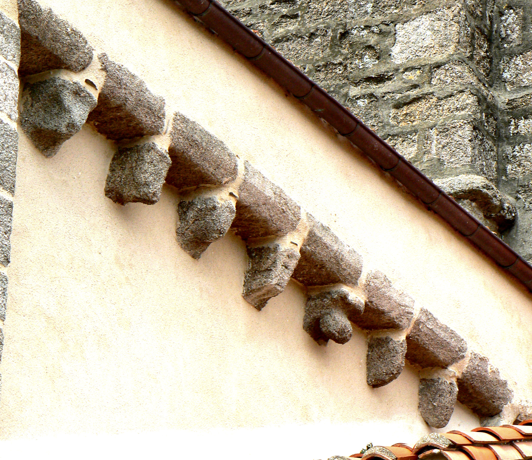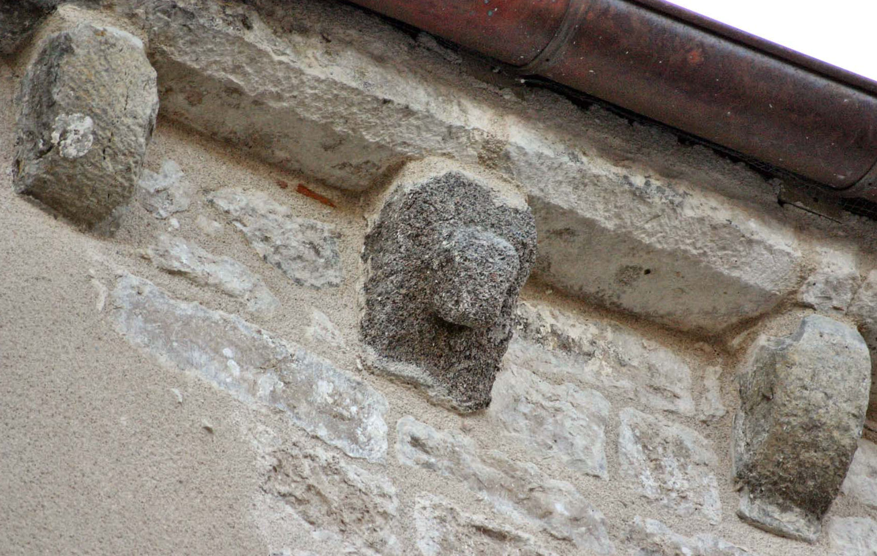 ![]() 5 5 – Modillon bien usé par le temps, vous pouvez encore voir une sculpture en forme de croisillon.