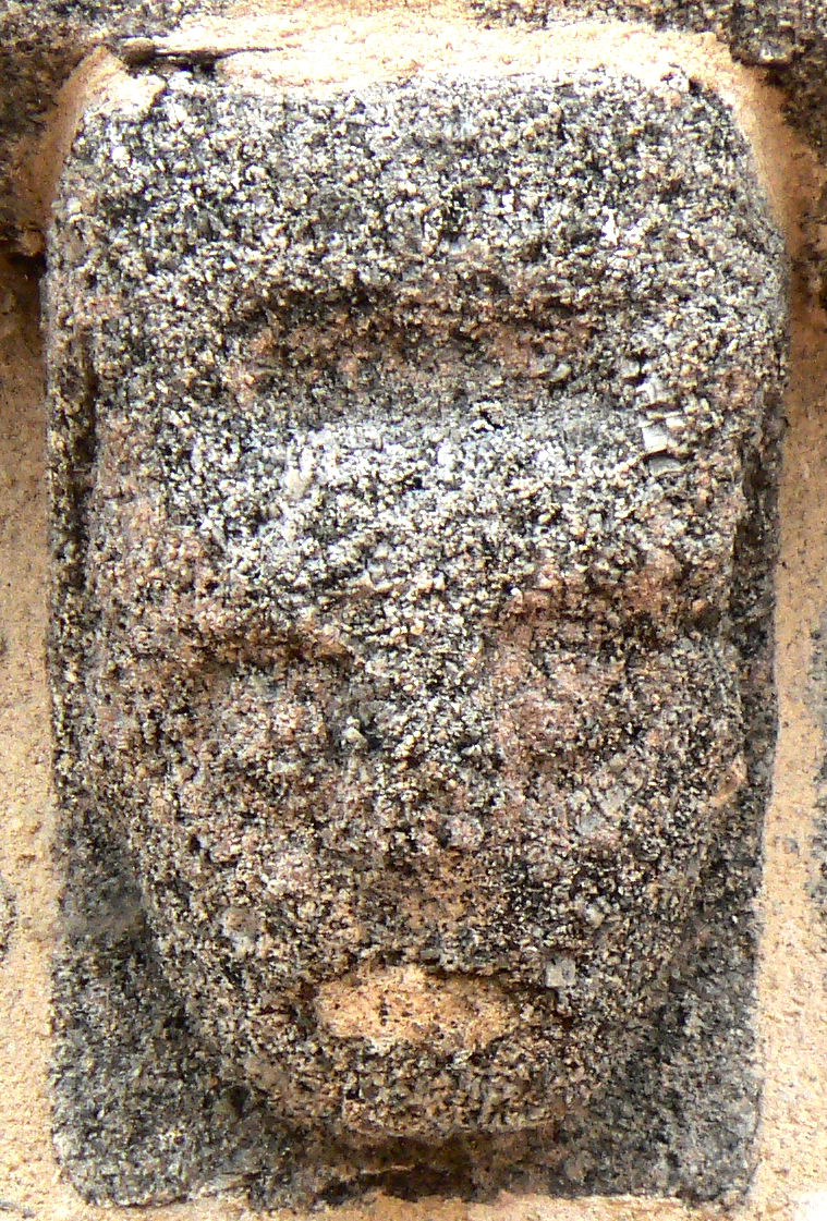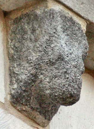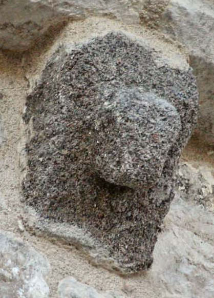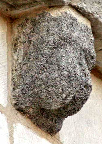 Ce modillon était encore visible en 2003, il a disparu en 2005 et remplacé par un modillon vierge. ![]() année 2003 ![]() ![]() ![]() Une tête de diable ? Il semble y avoir quelque chose au-dessus des cornes.
