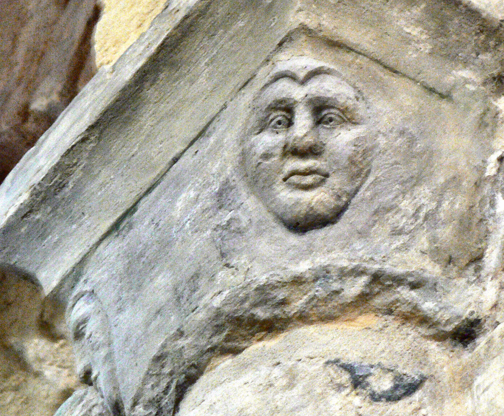 l'angle droit une tête humaine avec une longue barbe, sa bouche