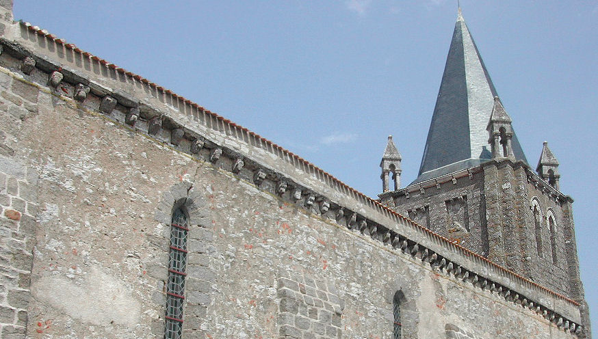 ![]() Sur la vue de droite on voit que la sculpture a été cribellé de plomb pour essayer de casser cette representation obscène. Ce genre de sculpture n'est pas si rare, nous pouvons la retrouver sur d'autres églises comme par exemple, celle de Bussière Poitevine (Haute-Vienne)