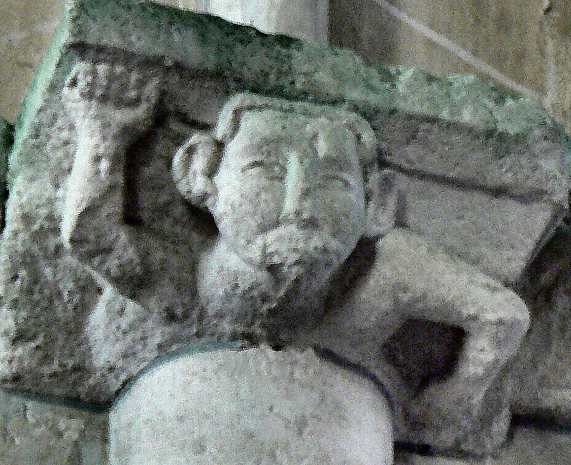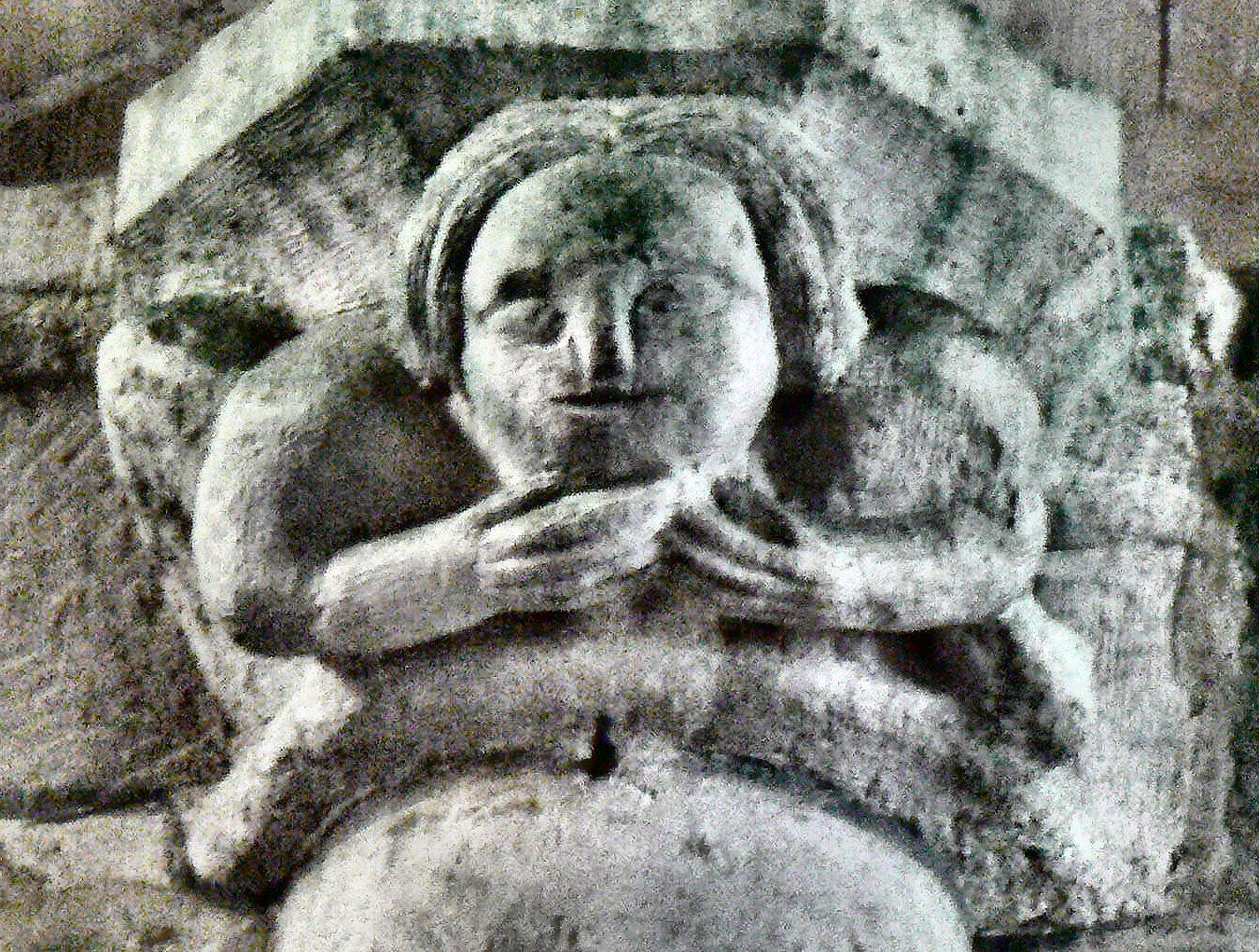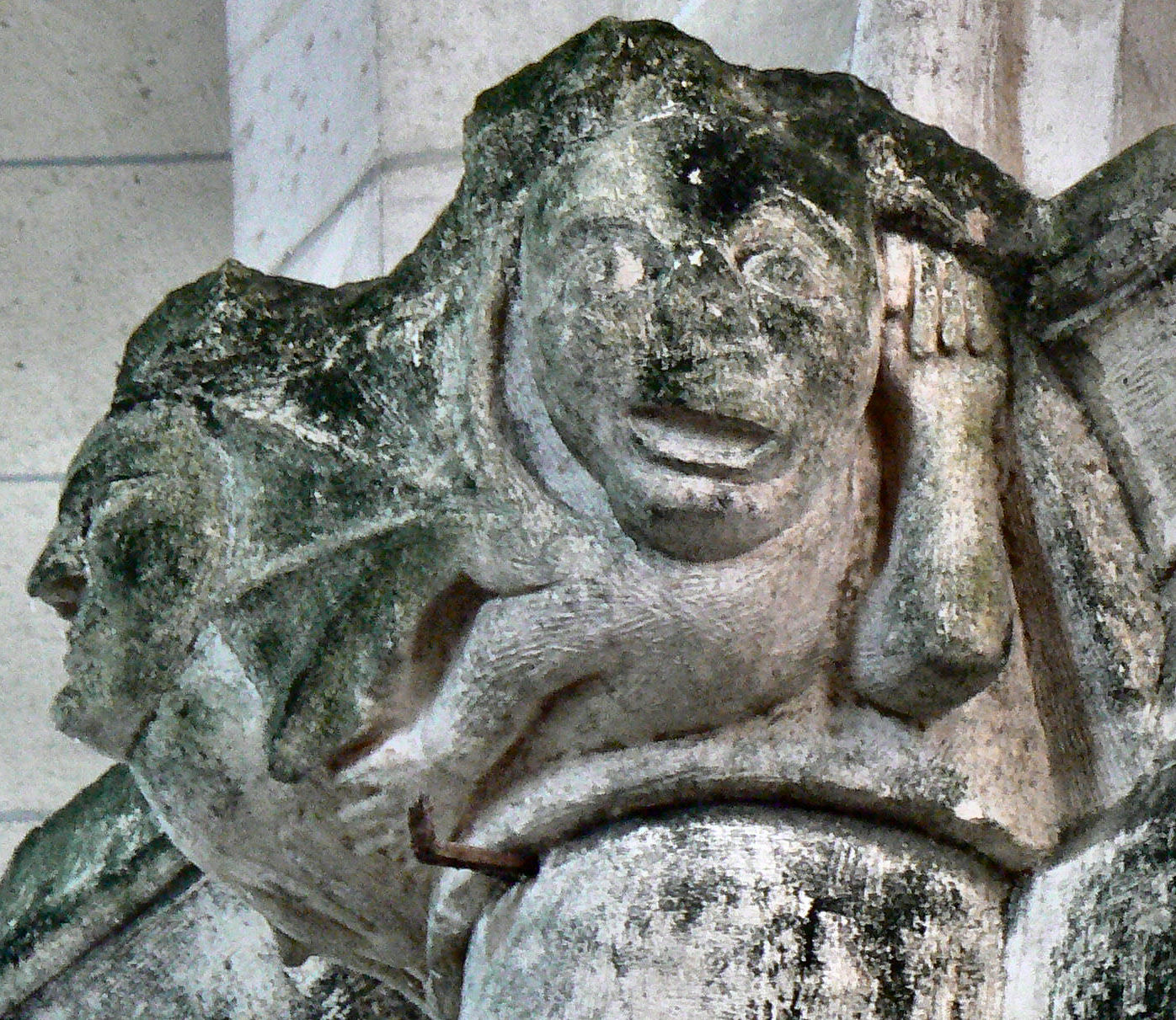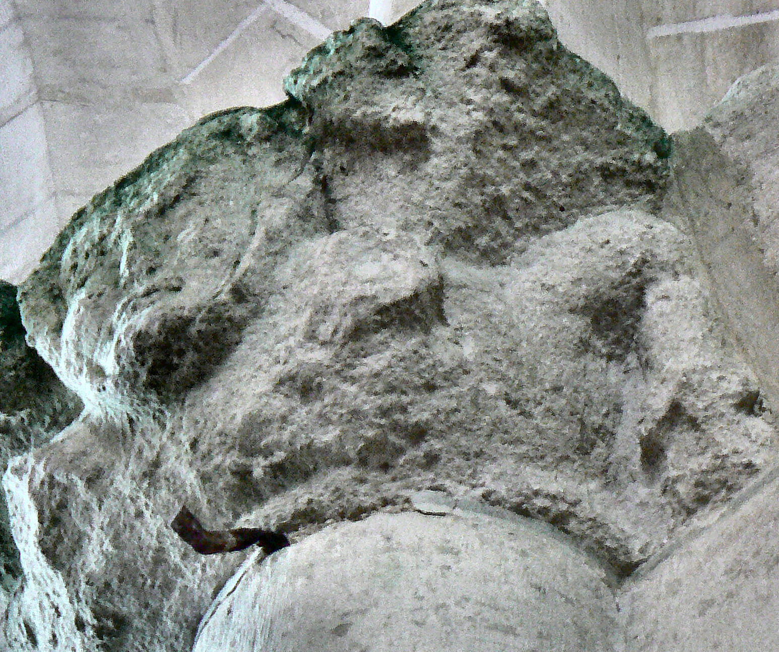 On dit même que le diable s'est invité dans ce lieu t, mais n'a guère pu aller plus loin que l'entrée. Levez la tête, et telle une armoirie démoniaque, il orne une clef de voûte.
