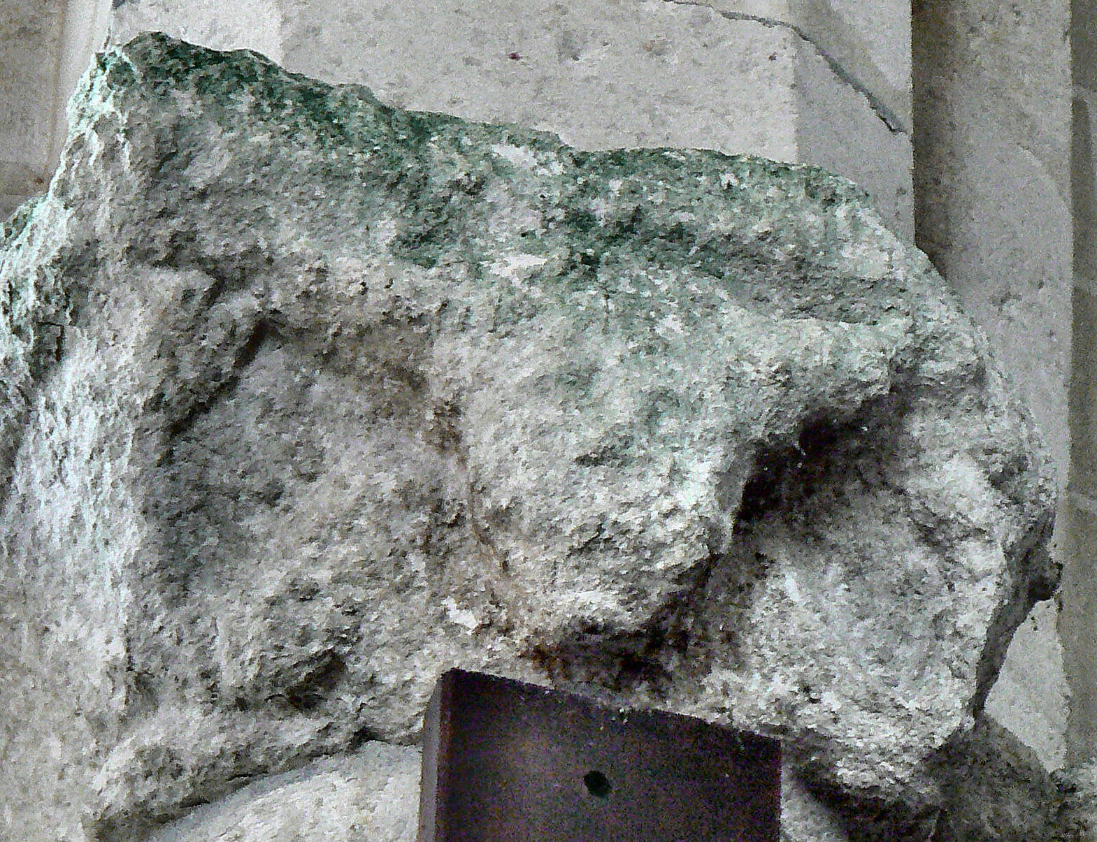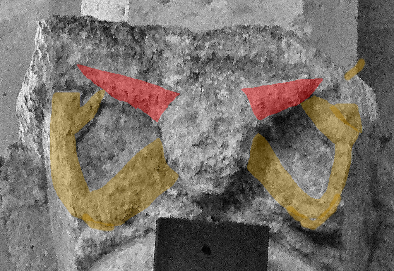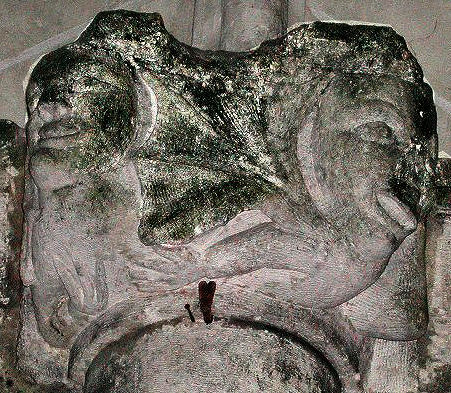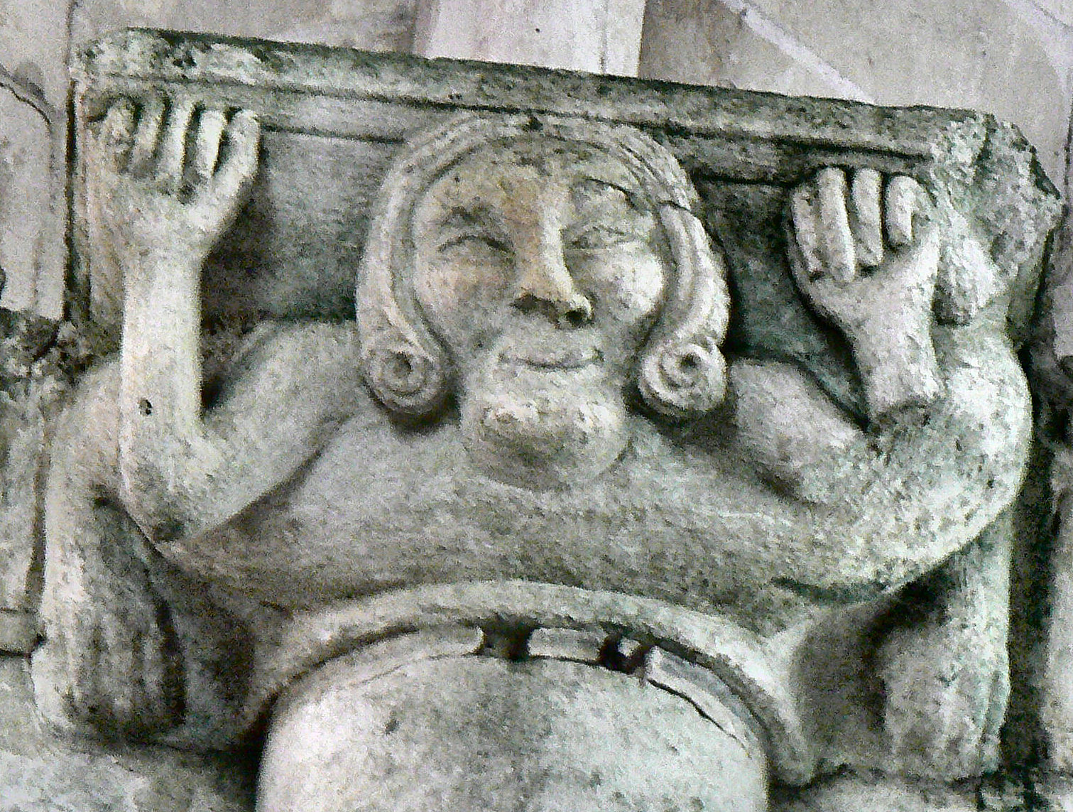 On dit même que le diable s'est invité dans ce lieu t, mais n'a guère pu aller plus loin que l'entrée. Levez la tête, et telle une armoirie démoniaque, il orne une clef de voûte.