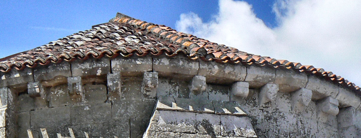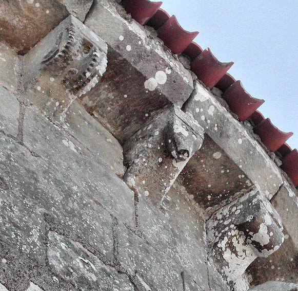 17 - 19 - Modillons à rouleau. 18 - Modillon décoré d'une pointe de diamant. ![]() 18 Modillons du clocher: