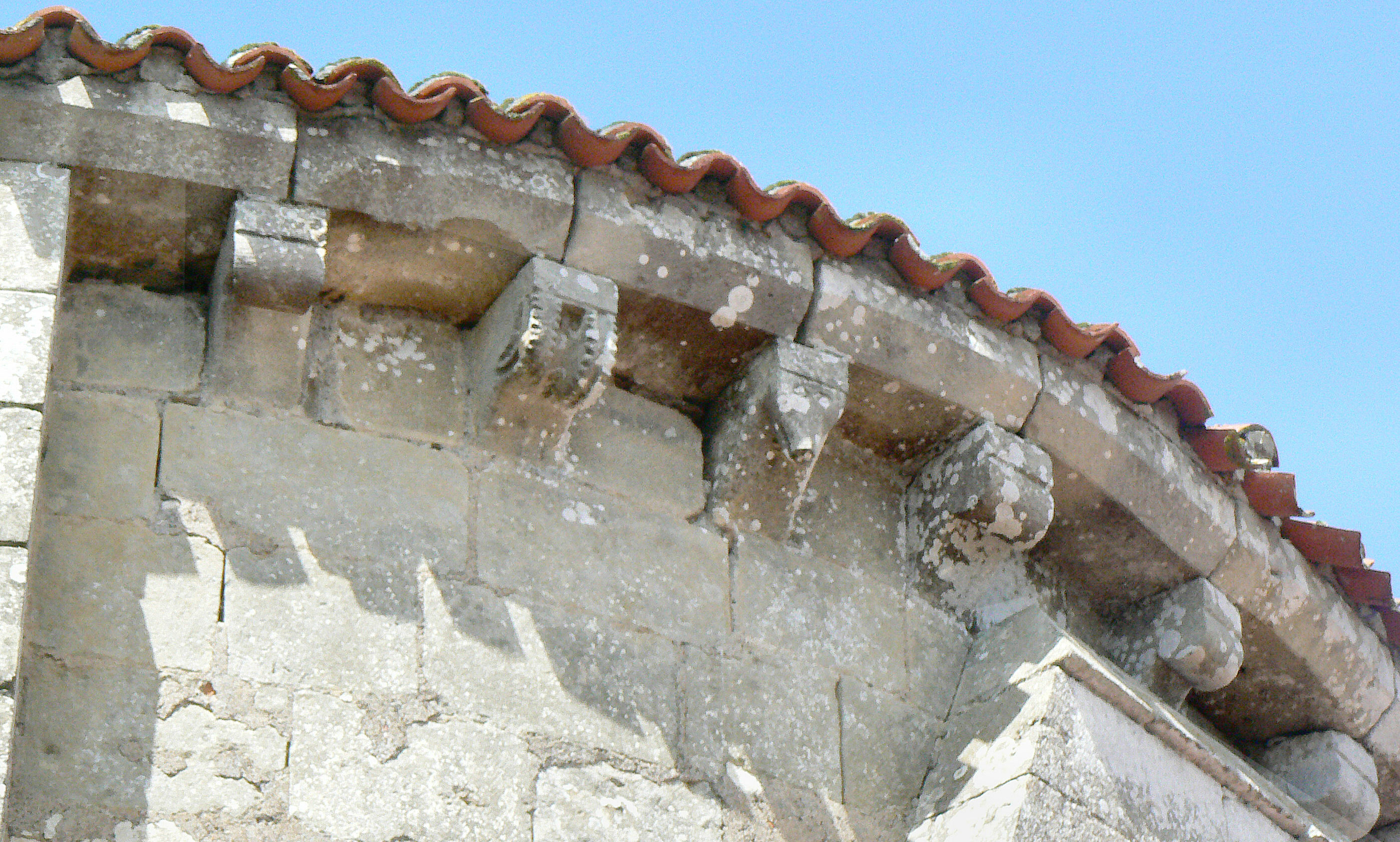 1 - Modillon cassé. 2 - 3 - Modillons à têtes humaines .