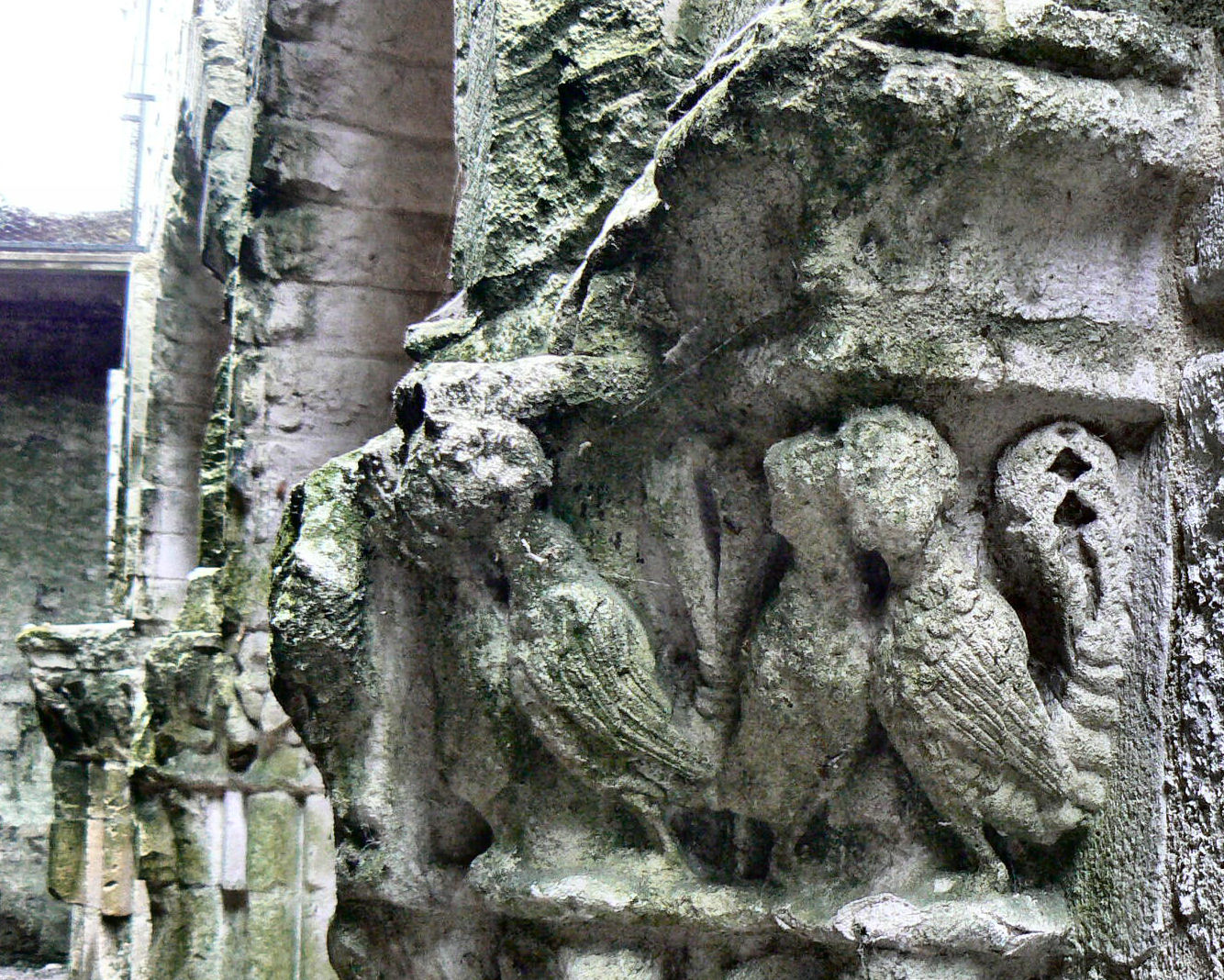 En continuant, voici un chapiteau qui devait représenter deux griffons.