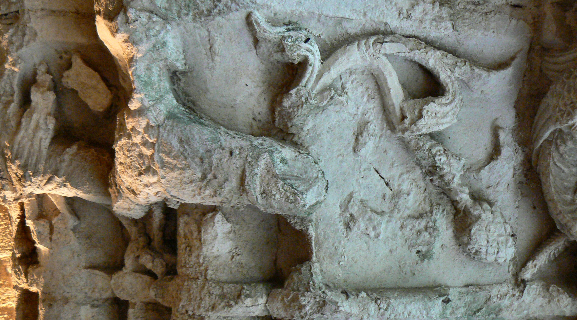 Sur ce chapiteau, à gauche, vous voyez deux dragons, celui