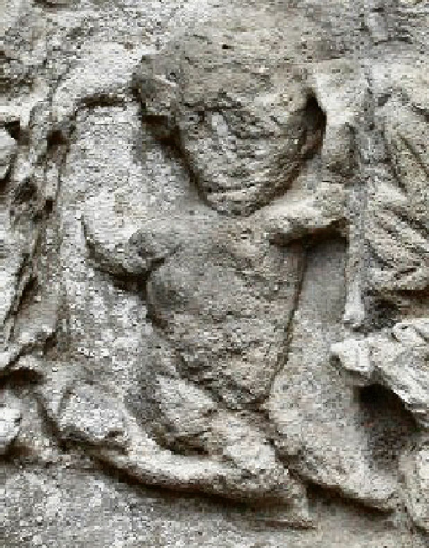 Sur la colonne vous voyez de chaque côté un animal qui peu être un chien ou un lapin.