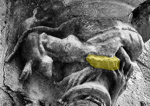 1 - Ce personnage pourrait bien être une femme nue, vous pouvez voir son sein gauche.
